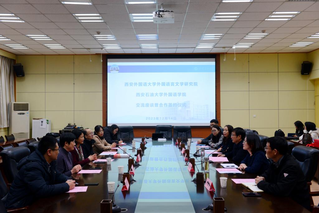 我校外國(guó)語(yǔ)學(xué)院與西安外國(guó)語(yǔ)大學(xué)外國(guó)語(yǔ)言文學(xué)研究院舉行交流座談會(huì)暨合作簽約儀式