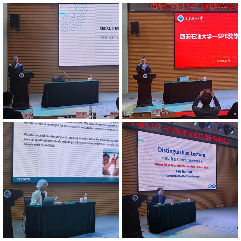 SPE南海分會委員魯申衛(wèi),CENOVUS公司中國區(qū)人力資源經(jīng)理陳芳、人力資源主管劉輝、人力資源分析師柳曼;我校相關(guān)學院負責人及200余名學生代表參加相關(guān)活動。
