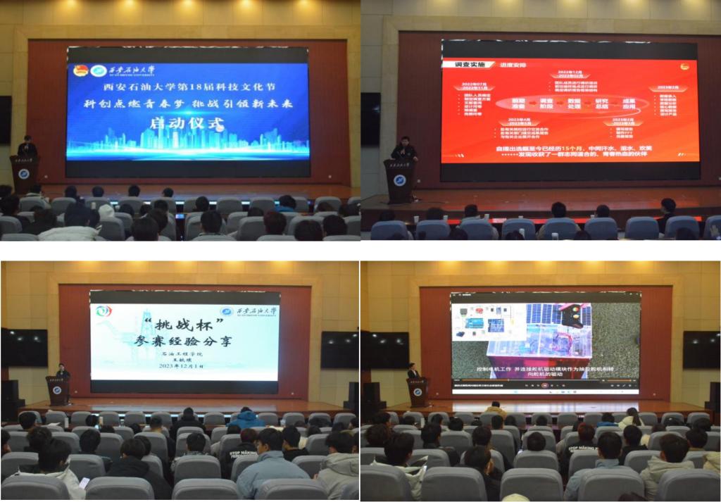在鄠邑校區(qū)弘石學(xué)術(shù)報(bào)告廳,舉辦了西安石油大學(xué)第十八屆科技文化節(jié)啟動(dòng)儀式和2024年“挑戰(zhàn)杯”大學(xué)生創(chuàng)業(yè)計(jì)劃競賽發(fā)布活動(dòng)。活動(dòng)邀請(qǐng)了“挑戰(zhàn)杯”全國大學(xué)生課外學(xué)術(shù)科技作品競賽主體賽全國二等獎(jiǎng)《國潮文創(chuàng)正當(dāng)時(shí),賦能“紅色”巧出圈——文創(chuàng)產(chǎn)品的紅色文化傳播調(diào)研》、“黑科技”專項(xiàng)賽恒星級(jí)獎(jiǎng)項(xiàng)《觀往知來新型智能管線安全模擬預(yù)測系統(tǒng)》、第十四屆“挑戰(zhàn)杯”陜西省大學(xué)生課外學(xué)術(shù)科技作品競賽二等獎(jiǎng)《井下醫(yī)生——致密砂巖地層井壁穩(wěn)定智能評(píng)價(jià)與隨鉆預(yù)測一體化系統(tǒng)》《操控式橫縱兩向鋪壓草方格生態(tài)修復(fù)機(jī)械》等優(yōu)秀獲獎(jiǎng)團(tuán)隊(duì)成員講述作品思路并分享參賽經(jīng)驗(yàn)。