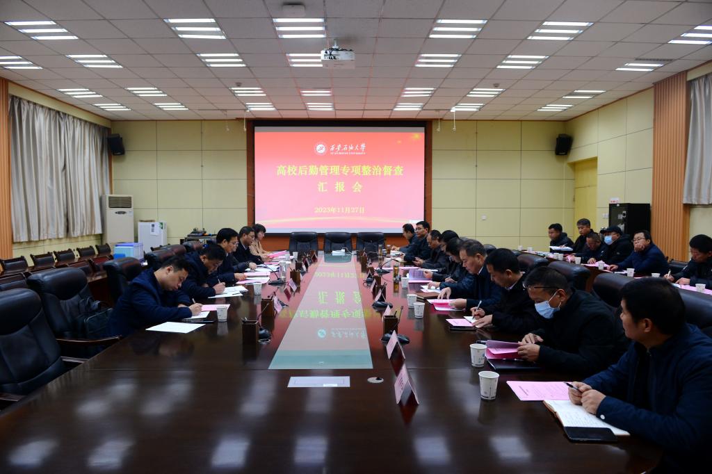 會(huì)上,后勤處處長茍金虎向督查組作了專題匯報(bào),從學(xué)生食堂管理、公寓管理、物業(yè)管理、維修改造、隊(duì)伍建設(shè)、整治成效等幾個(gè)方面匯報(bào)了我校專項(xiàng)整治工作推進(jìn)情況。