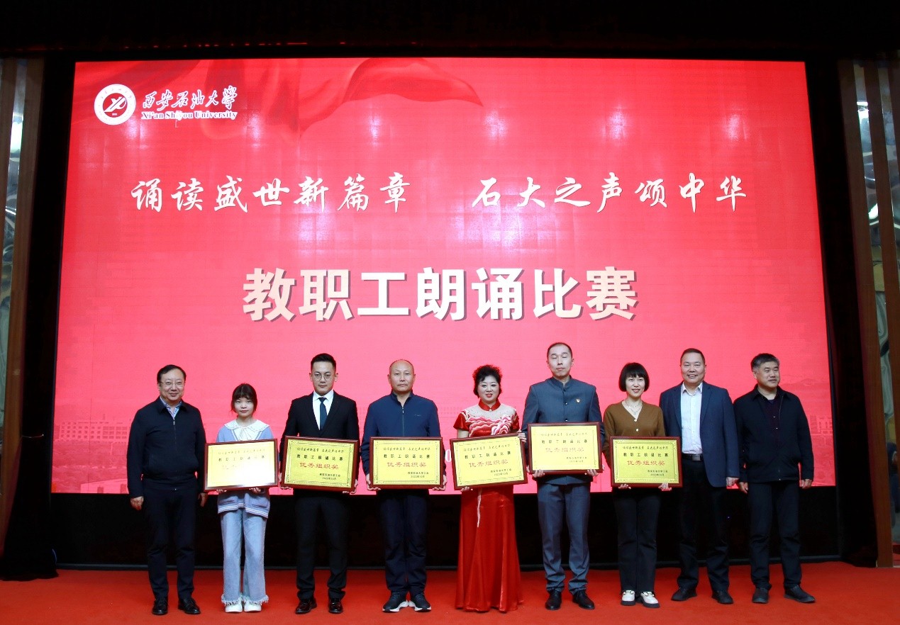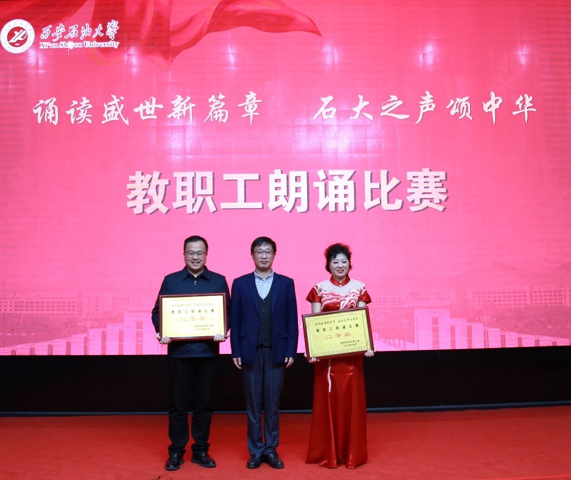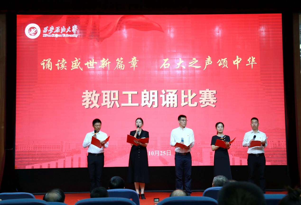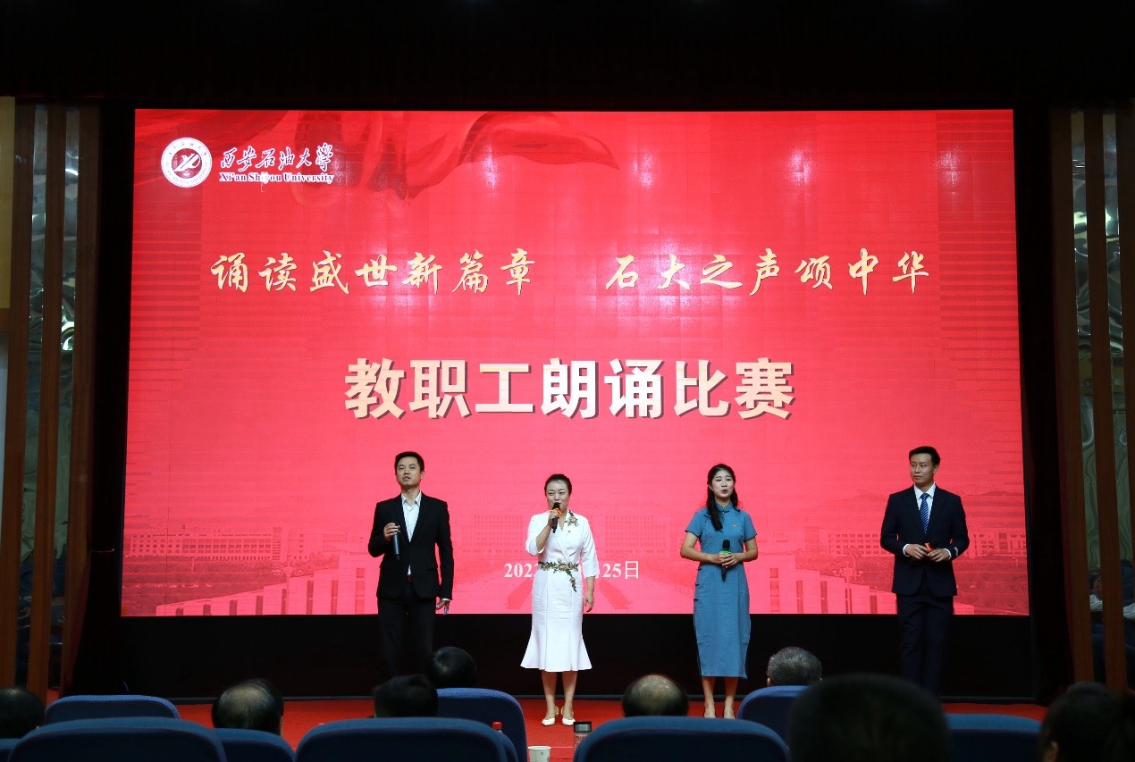 為深入學(xué)習(xí)宣傳貫徹習(xí)近平新時(shí)代中國(guó)特色社會(huì)主義思想和習(xí)近平總書記對(duì)宣傳思想文化工作的重要指示精神,弘揚(yáng)石油精神、鐵人精神,進(jìn)一步強(qiáng)化思想引領(lǐng)、凝聚思想共識(shí),推進(jìn)教職工文化建設(shè)、豐富教職工精神生活,10月25日下午,我?!罢b讀盛世新篇章 石大之聲頌中華”教職工朗誦比賽在雁塔校區(qū)會(huì)議中心學(xué)術(shù)報(bào)告廳舉行,校黨委書記常江、副校長(zhǎng)蘇文甫出席了此次活動(dòng)。22家部門工會(huì)選送了作品參賽,200余名師生觀看了比賽。