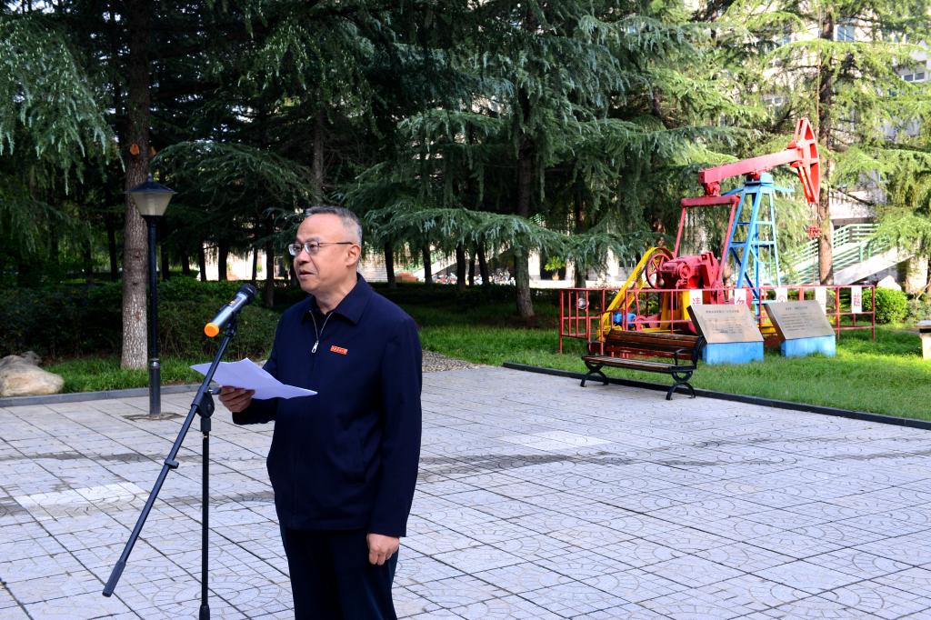 學(xué)校舉行向鐵人王進(jìn)喜同志敬獻(xiàn)花籃暨紀(jì)念鐵人王進(jìn)喜誕辰100周年系列活動(dòng)啟動(dòng)儀式