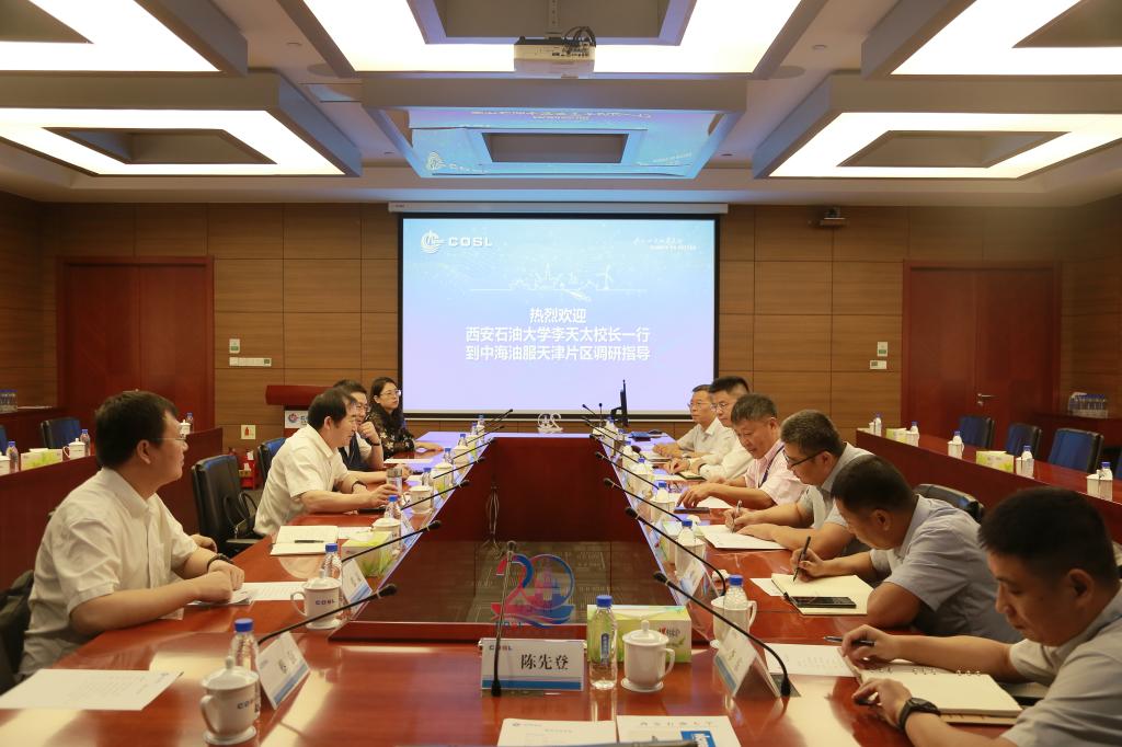 李天太一行與中海油田服務(wù)股份有限公司天津分公司黨委書記、總經(jīng)理劉俊彥,行政管理部經(jīng)理陳先登,一體化事和新能源事業(yè)部副總經(jīng)理徐榮強(qiáng)等領(lǐng)導(dǎo)及相關(guān)職能部門負(fù)責(zé)人進(jìn)行了座談交流。