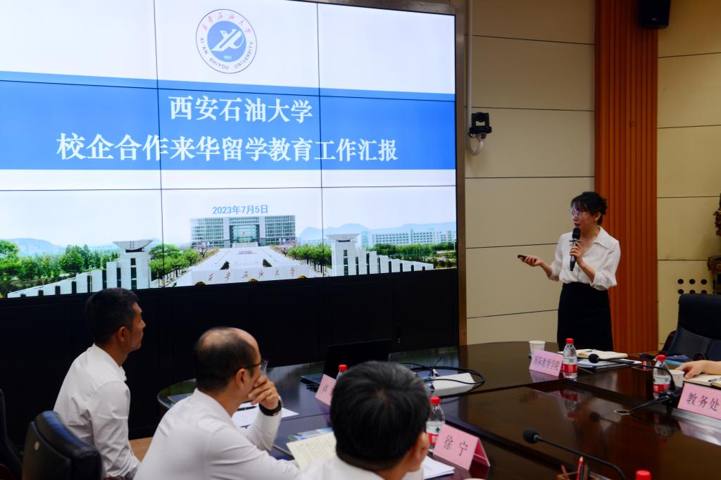 國(guó)際教育學(xué)院負(fù)責(zé)人從學(xué)校國(guó)際化工作介紹、來(lái)華留學(xué)生發(fā)展概況、中塔中吉項(xiàng)目匯報(bào)等三個(gè)方面詳細(xì)匯報(bào)了校企合作項(xiàng)目來(lái)華留學(xué)生教育工作。