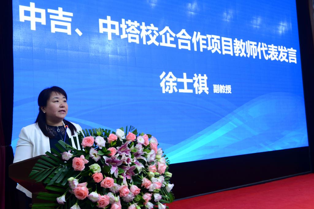 李天太在致辭中向校企合作項(xiàng)目來(lái)華留學(xué)畢業(yè)生致以熱烈的祝賀和衷心的祝福,并提出了三點(diǎn)希望:一是勿忘所學(xué)、繼續(xù)精進(jìn)學(xué)業(yè);二是勿忘友誼、成為交流使者;三是勿忘母校、感念師恩。