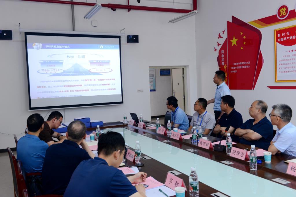 實驗室管理處副處長李慶本從我校及實驗室工作基本情況、實驗室安全工作主要舉措、實驗室安全工作存在的主要問題以及下一步的重點工作三個方面向檢查組作了詳細匯報。