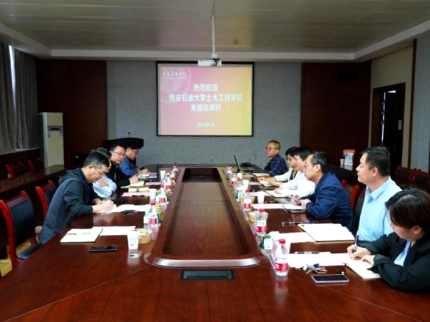 為高標(biāo)準(zhǔn)高質(zhì)量開展學(xué)習(xí)貫徹習(xí)近平新時代中國特色社會主義思想主題教育,深入落實習(xí)近平總書記來陜考察重要講話重要指示,扎實開展調(diào)查研究,5月24日至25日,副校長楊戰(zhàn)社率隊赴西安理工大學(xué)、西安工業(yè)大學(xué)走訪調(diào)研,分別與西安理工大學(xué)土木建筑工程學(xué)院黨委書記趙欽,西安工業(yè)大學(xué)建筑工程學(xué)院黨委書記劉慧萍、院長黃華等領(lǐng)導(dǎo)進(jìn)行交流座談。