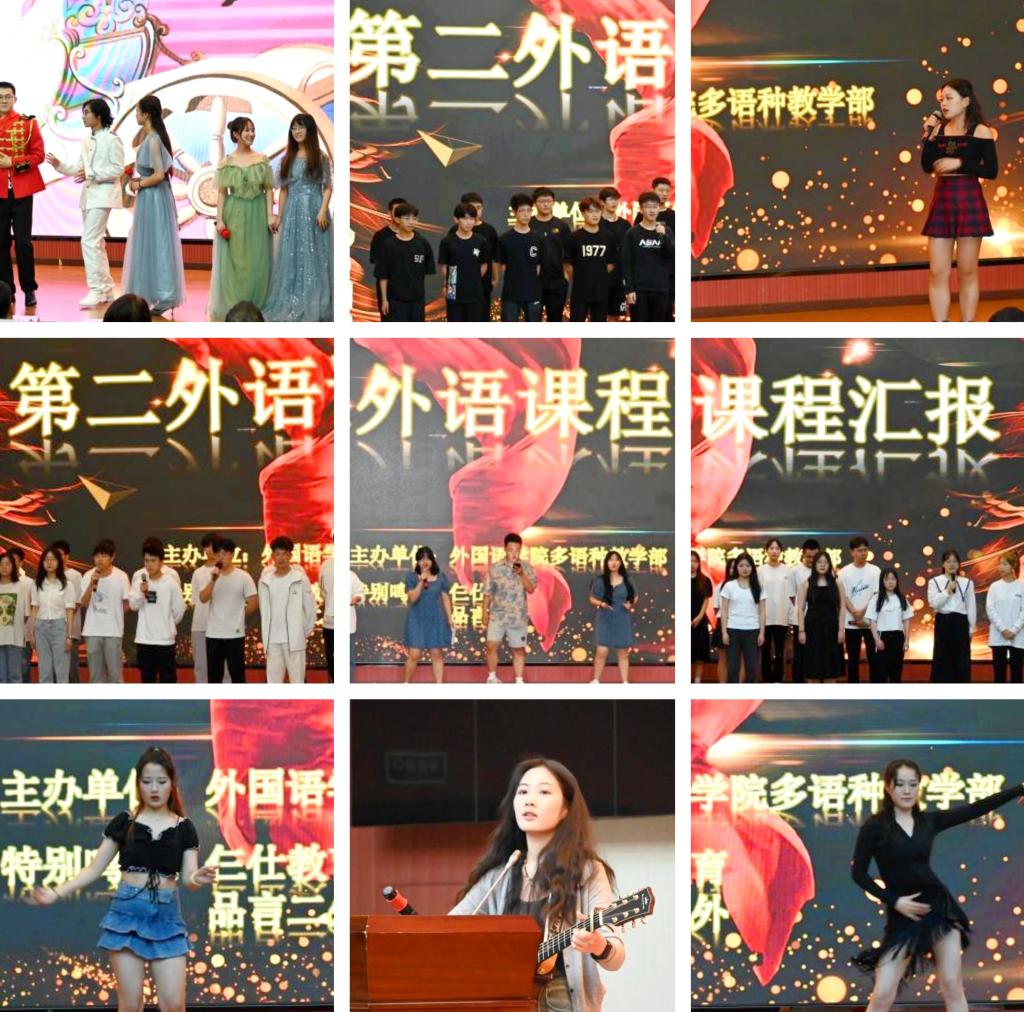 本次課程匯報(bào)在外國(guó)語(yǔ)學(xué)院多語(yǔ)種教學(xué)部教師們的精心組織和全校學(xué)習(xí)7種第二外語(yǔ)同學(xué)們的積極編排下,為全校師生帶來(lái)了一場(chǎng)國(guó)際化多語(yǔ)種的視聽(tīng)盛宴,有效展現(xiàn)了我校第二外語(yǔ)的教學(xué)成果。匯報(bào)會(huì)上,多語(yǔ)種教學(xué)部全體教師上臺(tái)與觀(guān)眾見(jiàn)面,介紹學(xué)校第二外語(yǔ)人才培養(yǎng)理念、課程開(kāi)設(shè)情況與學(xué)生學(xué)習(xí)情況。