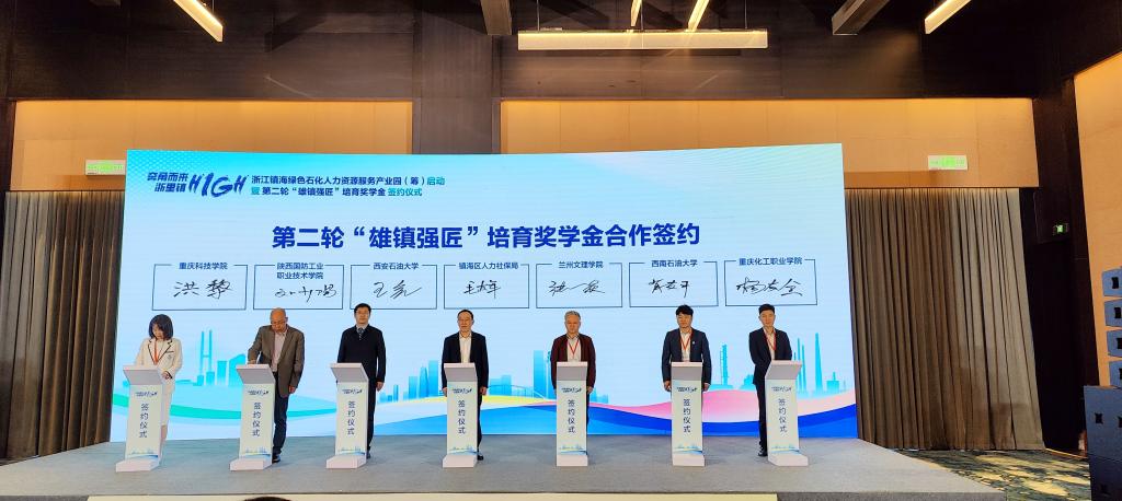 4月25日,我校受邀參加“奔甬而來·浙里鎮(zhèn)High”浙江鎮(zhèn)海綠色石化人力資源服務(wù)產(chǎn)業(yè)園(籌)啟動暨第二輪“雄鎮(zhèn)強匠”培育獎學(xué)金簽約儀式。學(xué)生工作部(處)部(處)長、就業(yè)指導(dǎo)中心主任王亮帶隊出席并代表學(xué)?,F(xiàn)場簽約。