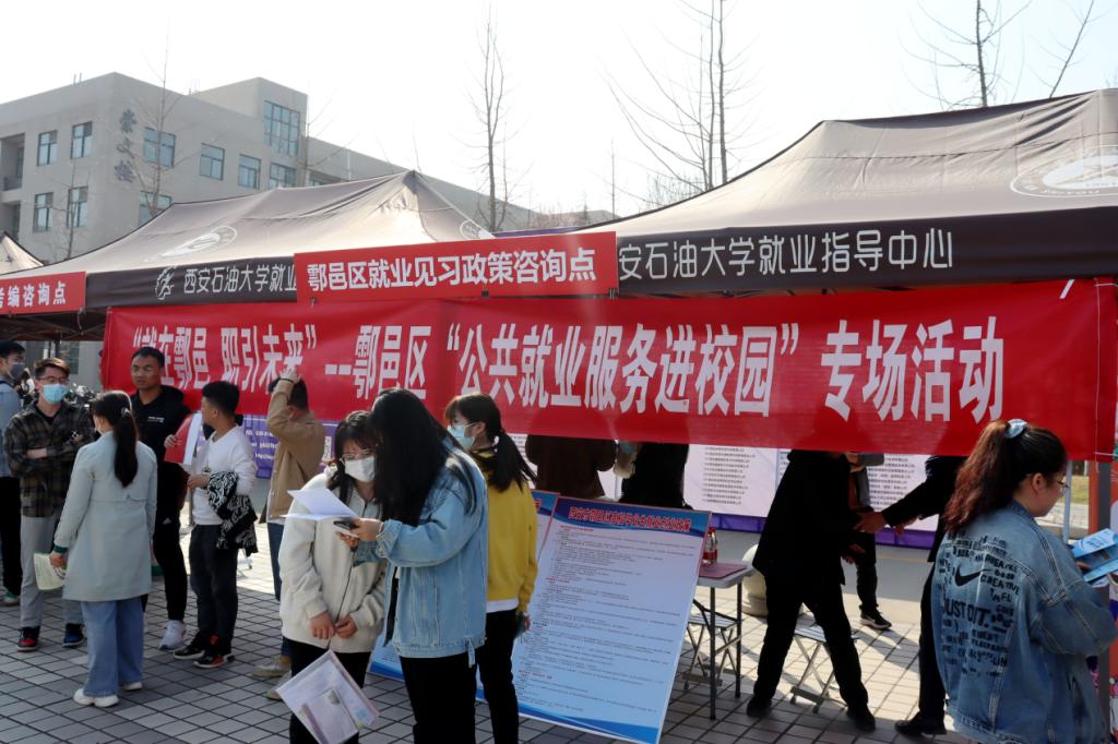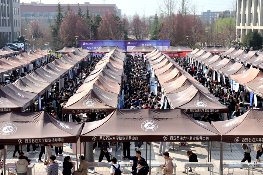 3月10日上午,我校2023屆畢業(yè)生春季校園招聘系列活動暨“訪企拓崗、萬企進?!笔讏鼍C合雙選會在鄠邑校區(qū)圖書館南廣場成功舉辦。中國石油天然氣第六建設有限公司、陜西陜煤榆北煤業(yè)有限公司、陜西建工集團股份有限公司、陜西隆基樂葉光伏科技有限公司、南通市海門區(qū)企業(yè)組團等312家單位進校招聘,我校及兄弟院校畢業(yè)生共計6000余名畢業(yè)生參加招聘會。