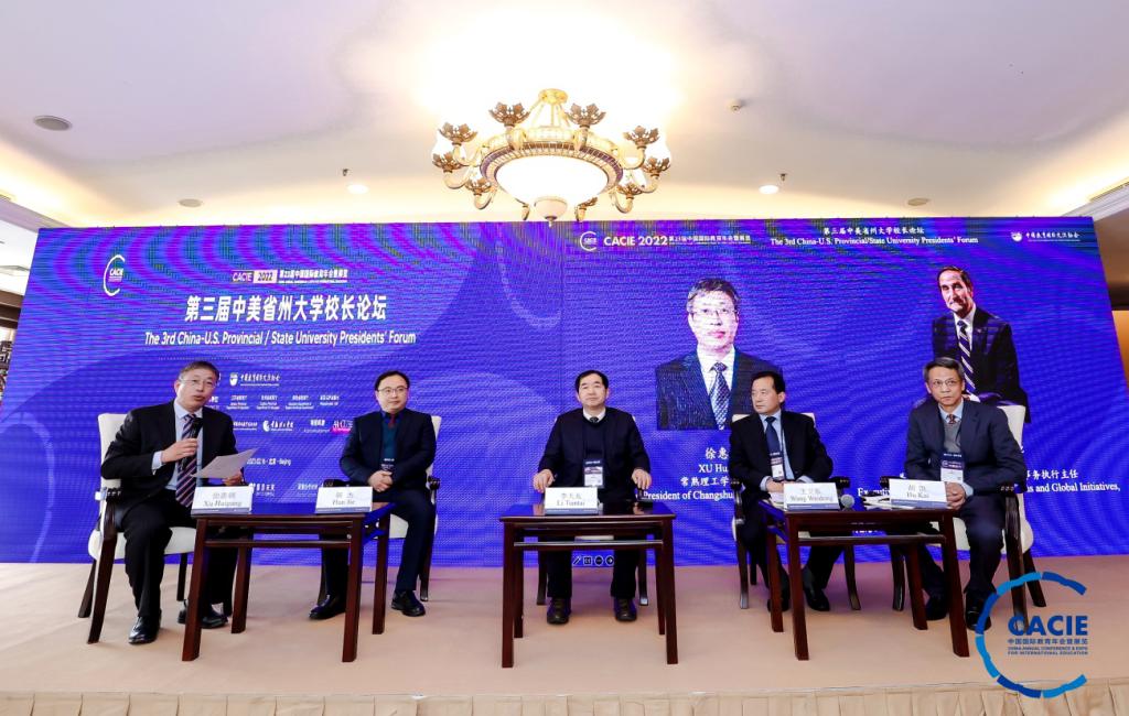 作為本屆年會的重要組成部分,第三屆中美省州大學校長論壇以線上+線下形式舉行,來自170多所中美高校的代表出席,邀請中美12所高校的校長作為發(fā)言和研討嘉賓。我校校長李天太是陜西高校唯一特邀論壇嘉賓。論壇主題為探索中美省州大學產(chǎn)教融合新模式,提高國際化人才培養(yǎng)質(zhì)量,服務地方經(jīng)濟社會新發(fā)展。論壇研討內(nèi)容包括以中美學分互認、學位聯(lián)授項目為基礎,以國際化人才培養(yǎng)為紐帶,構建高水平、寬領域、可持續(xù)的中美省州高校合作交流平臺。通過教育國際交流打造適應國家發(fā)展需求的新工科、新農(nóng)科、新商科等高質(zhì)量專業(yè)學科群,建設具有國際化水平的師資隊伍,加強中美高校之間學術科研合作,通過產(chǎn)教融合模式強化合作共贏理念,推進中美省州高校教育交流、人才培養(yǎng)、校企合作、科研合作、人文交流等,為地方經(jīng)濟社會發(fā)展服務。