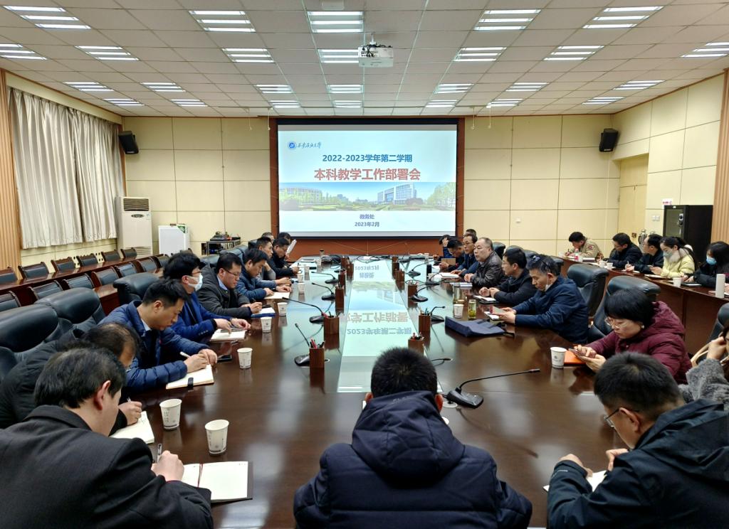 陳軍斌指出,各教學(xué)單位要按照學(xué)校春季開(kāi)學(xué)工作的總體要求,扎實(shí)做好新學(xué)期各項(xiàng)教學(xué)準(zhǔn)備工作,進(jìn)一步細(xì)化春季學(xué)期本科教學(xué)工作任務(wù),確保各項(xiàng)工作平穩(wěn)有序進(jìn)行。他強(qiáng)調(diào),一是各院(系)要高度重視上學(xué)期課程考核工作,結(jié)合學(xué)生上學(xué)期學(xué)習(xí)實(shí)際,精心組織開(kāi)展線下串講和輔導(dǎo)答疑,合理安排公共課程和專業(yè)課程考試,同時(shí)加快進(jìn)度補(bǔ)足補(bǔ)齊實(shí)驗(yàn)實(shí)習(xí)等實(shí)踐教學(xué)環(huán)節(jié),確保各項(xiàng)教學(xué)工作高質(zhì)量完成。二是加強(qiáng)招生宣傳與錄取工作,招生工作是立德樹(shù)人的起點(diǎn),優(yōu)質(zhì)生源是人才培養(yǎng)質(zhì)量的基礎(chǔ),要不斷創(chuàng)新工作思路,豐富宣傳方式,強(qiáng)化生源基地建設(shè),總結(jié)凝練專業(yè)特色與人才培養(yǎng)成效,增強(qiáng)學(xué)校影響力,提升宣傳實(shí)效,貫徹招生宣傳永遠(yuǎn)在路上的理念。三是深化教育教學(xué)改革,聚焦本科教學(xué)核心指標(biāo),督導(dǎo)檢查教改項(xiàng)目落實(shí)進(jìn)度,強(qiáng)化一流專業(yè)建設(shè),以課程建設(shè)為突破口,積極籌備一流課程申報(bào),全面推進(jìn)課程思政建設(shè),打造優(yōu)秀課程教學(xué)團(tuán)隊(duì),加強(qiáng)一流教材申報(bào)與建設(shè),提前謀劃精準(zhǔn)施策,統(tǒng)籌做好申報(bào)各環(huán)節(jié)工作,持續(xù)推進(jìn)工程教育專業(yè)認(rèn)證工作,加強(qiáng)實(shí)驗(yàn)教學(xué)平臺(tái)建設(shè),著力培育高水平教學(xué)成果,推動(dòng)本科教育高質(zhì)量發(fā)展。四是圍繞新一輪本科教育教學(xué)審核評(píng)估指標(biāo)體系,制定學(xué)校工作體系和實(shí)施方案,扎實(shí)做好基礎(chǔ)數(shù)據(jù)統(tǒng)計(jì)工作,對(duì)標(biāo)對(duì)本籌備自評(píng)報(bào)告,提出問(wèn)題清單,組織學(xué)習(xí)審核評(píng)估指標(biāo)體系,查缺補(bǔ)漏著手準(zhǔn)備基層教學(xué)資料歸檔工作。五是以審核評(píng)估指標(biāo)體系為依據(jù),做好教學(xué)經(jīng)費(fèi)預(yù)算,全力保障實(shí)驗(yàn)室建設(shè)、教學(xué)日常運(yùn)行及教學(xué)資源條件,同時(shí)保證經(jīng)費(fèi)投入的合理性、使用的有效性以及管理的規(guī)范性。六是扎實(shí)推進(jìn)師德教風(fēng)建設(shè),牢固樹(shù)立教師師德底線意識(shí),嚴(yán)肅教風(fēng)教紀(jì),愛(ài)業(yè)愛(ài)生,身體力行,爭(zhēng)做“德高為師,身正為范”以及“四有”好老師。七是各級(jí)教學(xué)管理人員要嚴(yán)于律己,加強(qiáng)學(xué)習(xí),以身作則,提高教學(xué)管理水平,增強(qiáng)統(tǒng)籌協(xié)調(diào)、系統(tǒng)謀劃能力,做到“勤思考、勤動(dòng)手、勤動(dòng)嘴、勤動(dòng)腿”,深入課堂一線,深入基層教學(xué)組織,善于在細(xì)微處發(fā)現(xiàn)問(wèn)題解決問(wèn)題,以高效的教學(xué)管理促進(jìn)教學(xué)質(zhì)量有力提升。