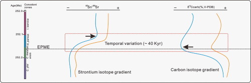 在二疊系/三疊系之交,發(fā)生了地質歷史時期最大規(guī)模的生物大滅絕事件,該事件導致90%的海洋生物和75%的陸地生物滅絕,并留下了眾多關鍵的生物地層學與化學地層學證據。此前研究證實了全球火山活動為主導因素的環(huán)境惡劣化導致海洋缺氧、溫度升高、森林大火、陸地風化、酸雨等不利條件是導致生物大滅絕的重要原因,但不同研究剖面所得結論仍存在廣泛爭議,如碳同位素顯著負漂移的控制因素、生態(tài)短暫恢復是否具有全球一致性、早三疊世生態(tài)輻射的階段性等等。該文以中國華南剖面為研究對象,利用鍶、碳、氧同位素為研究手段,并與世界范圍內其它研究剖面進行了對比探討,在如下幾方面做出了標志性成果:(1)首次嘗試提出了高分辨率(<0.5百萬年)鍶同位素化學地層學。以前普遍認為,鍶元素在海水中滯留時間為1~2百萬年,而海水混合均一時間僅數千年,因此海水中鍶同位素是均一的,且其同位素地層對比的精度在1~2百萬年。但該文通過連續(xù)密集取樣分析,以及對比前人百萬年尺度內的研究對比,發(fā)現鍶同位素在不同剖面百萬年尺度內(<0.5百萬年)存在時空差異,并非如前人所描述的全球一致。論文進一步提出了陸源物質快速輸入和海洋停滯是導致鍶同位素在不同剖面的時空差異的原因。這為以后利用鍶同位素開展二/三疊之交古海洋環(huán)境演化的高分率尺度研究提供有益探索。(2)為短暫生態(tài)恢復期“冷卻事件”提供新的證據。該文通過高分率化學地層分析,表明短暫生態(tài)恢復期的“冷卻事件”(Wuchiapingian/Changhsingian Boundary Cooling Event并非全球同步出現,而表現出地區(qū)差異性,并且主要受控于海水深度和距離巖漿活動距離。這為生物大滅絕發(fā)生的時空不均衡性提供了有力證據。(3)為二疊系/三疊系之交海洋分層缺氧提供了新的證據。論文深入探討了不同水深環(huán)境剖面主滅絕線(Permian/Triassic Boundary)處鍶、碳同位素梯度的特征,論證了該梯度由海洋分層和洋流循環(huán)停滯所造成,遠洋和近陸分別受控于海底火山和陸源物質輸入的控制,而與海洋初級生產力變化無關。