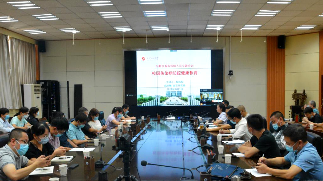 為進一步做好疫情防控工作,提高全體后勤保障人員的校園傳染病處置能力,筑牢校園疫情防控“安全墻”,增強全體“大后勤”職工、各崗位從業(yè)人員對新冠疫情防控、常見傳染病的預防意識和防護技能,切實保障學校全體師生的身體健康和生命安全,9月1日下午,我?!靶@傳染病防控健康教育”專題培訓會在雁塔、鄠邑兩校區(qū)采取“線上+線下”形式同步進行。副校長蘇文甫參會并講話。培訓會由后勤處處長茍金虎主持。
