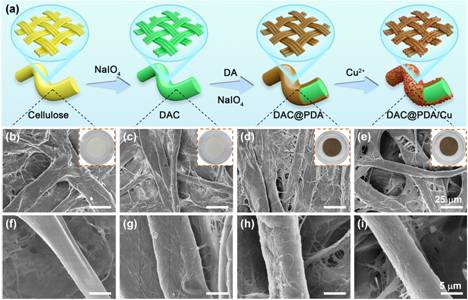 進一步,該課題組利用銅離子氧化促進多巴胺在纖維素膜上的沉積,通過一步法簡便、快速地制備了以纖維素為載體、以銅離子為活性中心的纖維素模板銅摻雜聚多巴胺膜。研究表明該薄膜具有類似天然漆酶的催化活性。而且,仿生酶表現(xiàn)出更高效的催化性能和更好的親和力。此外,仿生酶具有良好的儲存穩(wěn)定性和可重復(fù)使用性,室溫下保存7天后仍能夠維持100%活性,經(jīng)過5次循環(huán)使用后催化活性未發(fā)生明顯變化。相關(guān)成果以“Cu-boosted one-pot nanoarchitectonics for synthesis of polydopamine membranes as reusable laccase mimic”為題發(fā)表在化學(xué)權(quán)威期刊Journal of Colloid and Interface Science上(DOI: 10.1016/j.jcis.2022.07.167)。以上工作得到了國家自然科學(xué)基金、陜西省高層次人才計劃、陜西省青年科技新星支持計劃的資助。