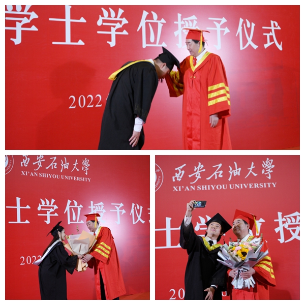 6月27日上午,西安石油大學2022屆優(yōu)秀畢業(yè)生代表學士學位授予儀式在鄠邑校區(qū)弘石學術(shù)報告廳隆重舉行。校長、校學位評定委員會主席李天太,副校長、校學位評定委員會副主席陳軍斌出席學士學位授予儀式。學士學位授予儀式由校黨委副書記、校學位評定委員會副主席張木主持。鄠邑校區(qū)管理辦公室、學生工作處、教務處等相關職能部門負責人、各院(系)負責人、208名優(yōu)秀畢業(yè)生代表參加授位儀式。