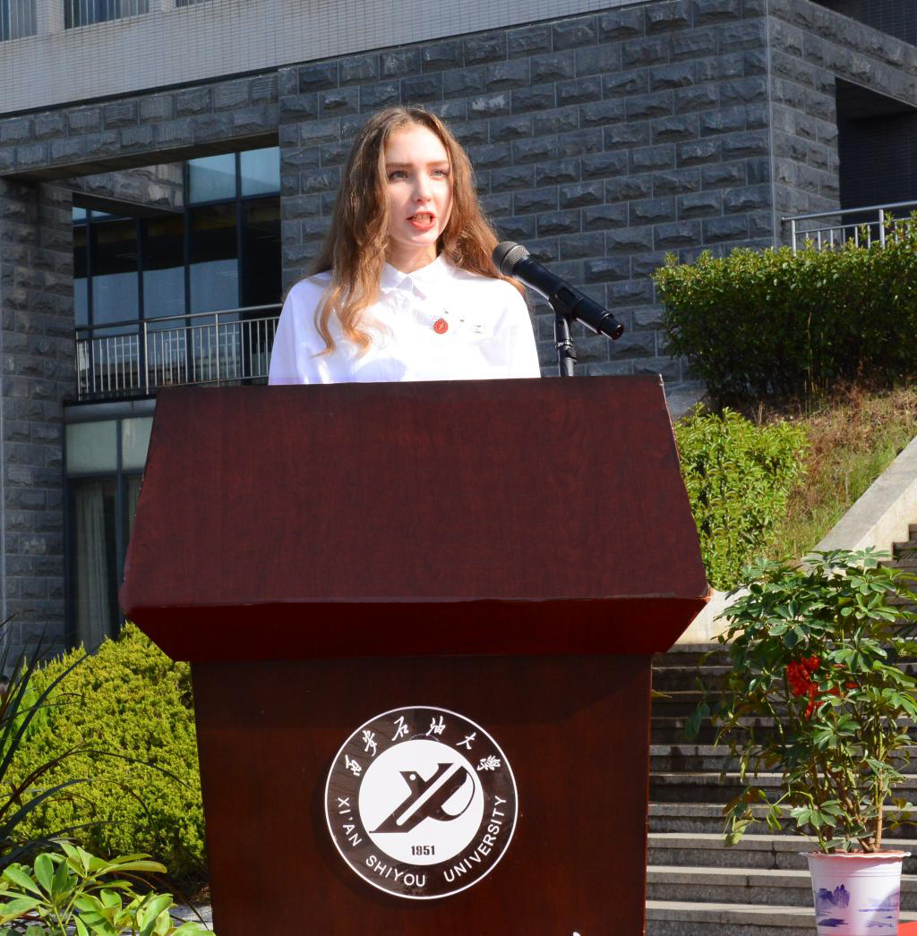 人文學(xué)院中文1801班劉渝琳同學(xué)、來(lái)自俄羅斯的經(jīng)濟(jì)管理學(xué)院國(guó)貿(mào)1801班安琳娜同學(xué)分別代表畢業(yè)生和留學(xué)生發(fā)言。