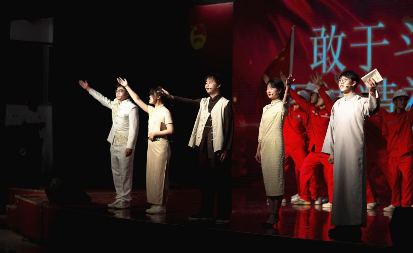 表彰大會(huì)結(jié)束后,與會(huì)人員一起觀看了“不負(fù)韶華,強(qiáng)國(guó)有我”青春詩(shī)會(huì)。本次詩(shī)會(huì)將不同時(shí)期的愛(ài)國(guó)主義經(jīng)典詩(shī)作與部分原創(chuàng)內(nèi)容有機(jī)結(jié)合,按照時(shí)間的脈絡(luò)分為“革命理想高于天”“改革建設(shè)動(dòng)天地”“時(shí)代征程起宏圖”三大篇章。在第一篇章,《不朽》《吹號(hào)者》等作品鮮明生動(dòng)地展現(xiàn)出新民主主義革命時(shí)期,中國(guó)共產(chǎn)黨和人民軍隊(duì)的崇高革命理想與堅(jiān)定革命信念,表達(dá)出不怕?tīng)奚⒏矣趧倮臒o(wú)產(chǎn)階級(jí)革命樂(lè)觀主義精神。在第二篇章,《祖國(guó)的春風(fēng)》《盛世中國(guó)》等作品集中展現(xiàn)了改革開(kāi)放和社會(huì)主義現(xiàn)代化建設(shè)時(shí)期,黨領(lǐng)導(dǎo)全國(guó)各族人民在中國(guó)特色社會(huì)主義建設(shè)中取得的偉大成就。在第三篇章,《石油時(shí)代贊歌》《新時(shí)代我們永遠(yuǎn)在路上》《北京冬奧頌》等作品集中展現(xiàn)了黨的十八大以來(lái),以習(xí)近平同志為核心的黨中央領(lǐng)導(dǎo)廣大青年投身全面建成小康社會(huì)、全面建設(shè)社會(huì)主義現(xiàn)代化國(guó)家的偉大歷史進(jìn)程。