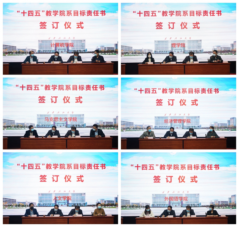 會(huì)議首先由校黨委書(shū)記賽云秀和校長(zhǎng)李天太與各院(系)書(shū)記、院長(zhǎng)簽訂“十四五”事業(yè)發(fā)展規(guī)劃目標(biāo)責(zé)任書(shū)。院系 “十四五”目標(biāo)責(zé)任書(shū)從黨建與文化建設(shè)、學(xué)科專業(yè)、人才培養(yǎng)、師資隊(duì)伍、科學(xué)研究、合作與交流等不同維度明晰了院系“十四五”建設(shè)目標(biāo)與任務(wù)。