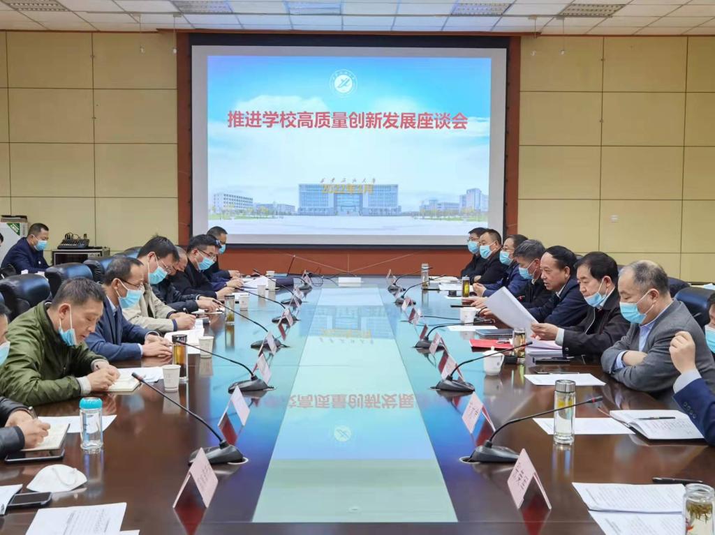 校長李天太在座談會上指出,“十四五”時期是學校建設發(fā)展的關鍵和重要階段,在良好的現(xiàn)實機遇、政策機遇面前,全體教職工要有坐不得的緊迫感、慢不得的危機感和等不及的責任感,要立足新時代,適應新形勢,堅持特色辦學,堅定不移走內涵式發(fā)展道路,要堅持目標引領,狠抓工作落實,切實推進學校各項工作高質量發(fā)展。一要加大學科發(fā)展改革力度,完善學科建設內部治理結構,促進學科交叉融合,優(yōu)化學科布局;二要加大專業(yè)資源保障力度,以OBE理念引領專業(yè)發(fā)展,深化專業(yè)內涵建設;三要加大高層次人才引育力度,優(yōu)化人才隊伍培養(yǎng)體系,建設高水平師資隊伍;四要積極創(chuàng)新人才培養(yǎng)模式,深化教育教學改革,推進新工科、新文科建設;五要準確聚焦產業(yè)、精準對接企業(yè)、深度融入行業(yè),大力加強科技創(chuàng)新和產教融合,切實做到“精準深”;六要堅持改革創(chuàng)新,建立高效流暢的內部管理體制,完善導向鮮明的用人機制,構建向一線傾斜的考核評價體系,講究統(tǒng)籌兼顧的工作方法,激發(fā)全體教職工的內生動力。