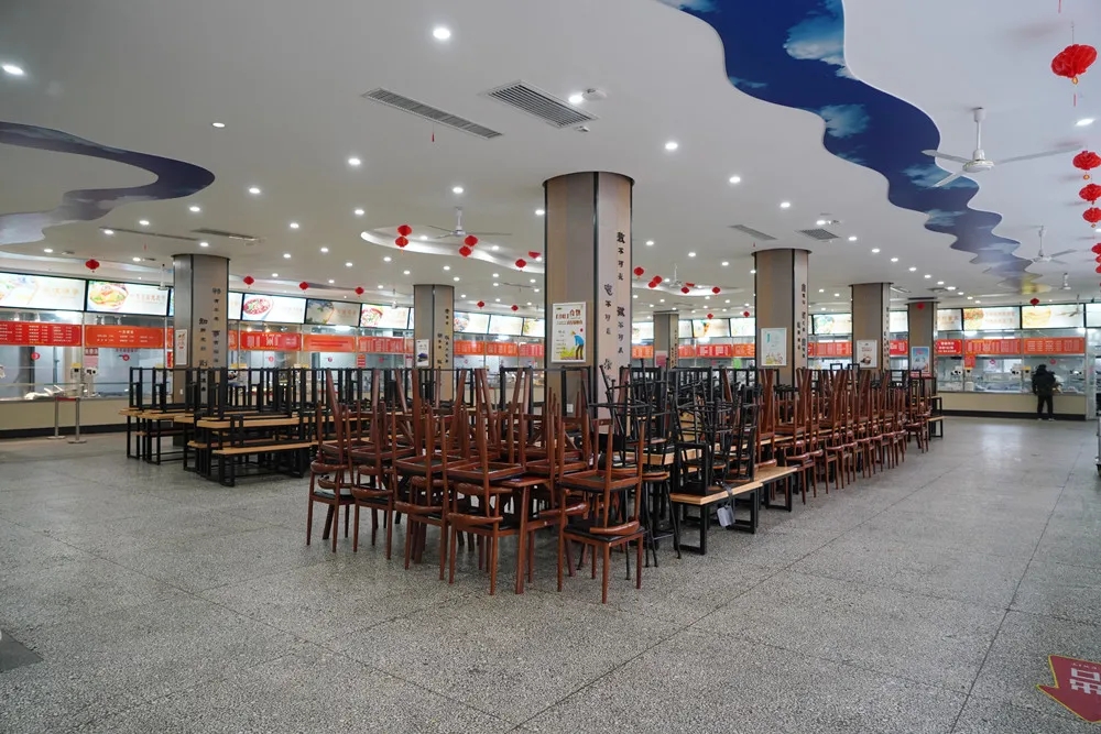 科學(xué)制定、動(dòng)態(tài)調(diào)整就餐方案,除集中保潔消殺時(shí)段,兩校區(qū)校園餐廳加強(qiáng)供應(yīng),每餐每個(gè)宿舍指派一人前來(lái)取餐,禁止堂食。