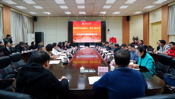 陳軍斌副校長代表學校對西安軟件園發(fā)展中心副主任張露一行來訪表示歡迎,并簡要介紹了學校近年來在人才培養(yǎng)、科學研究、師資隊伍、社會服務(wù)等方面建設(shè)情況。他談到,此次和西安軟件園等相關(guān)企業(yè)簽署合作協(xié)議,是深入貫徹國家產(chǎn)學研、產(chǎn)教融合的集中體現(xiàn),是深化落實國家關(guān)于高校畢業(yè)生全方位、多視角就業(yè)的具體舉措,有利于健全高校政產(chǎn)學研協(xié)同育人機制,有助于學校培養(yǎng)面向社會,面向市場,適合社會發(fā)展需要的人才,進而實現(xiàn)雙方合作育人、合作就業(yè)、合作發(fā)展。雙方要持續(xù)挖掘契合點,不斷創(chuàng)新合作模式,擴大合作范圍,打造深層次校企合作平臺,在人才培養(yǎng)、基地建設(shè)、教材建設(shè)、培養(yǎng)方案修訂等方面取得深度合作和無縫對接,進而實現(xiàn)“雙贏”。