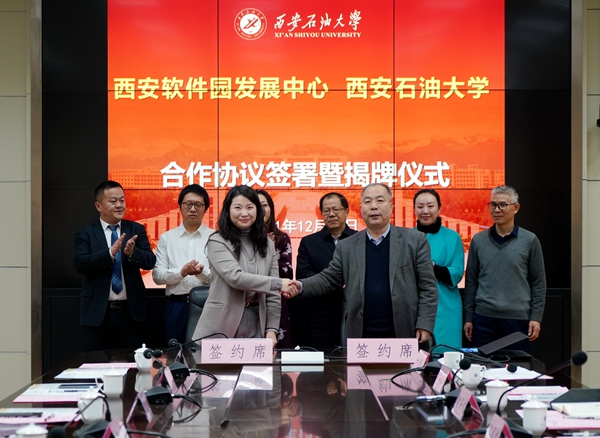12月10日上午,我校與西安軟件園發(fā)展中心合作協(xié)議簽署暨揭牌儀式在雁校區(qū)第二會議室舉行。西安軟件園發(fā)展中心副主任張露、西安西軟云智信息科技有限公司總經(jīng)理賈銳、華為技術(shù)有限公司華為云陜西運營總監(jiān)毛江飛、中軟國際教育科技股份有限公司政企業(yè)務(wù)線副總裁邵作杲等一行12人,我校副校長陳軍斌出席儀式。儀式由合作發(fā)展處副處長林紅先主持。