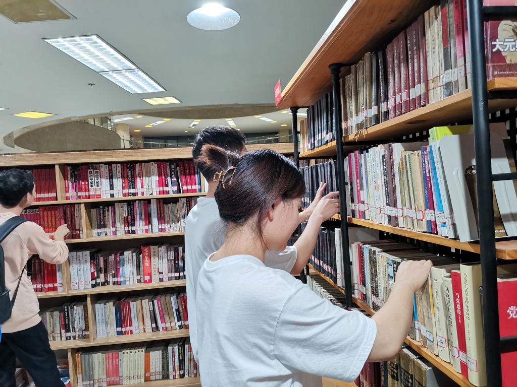 國慶期間,馬克思主義學(xué)院研究生在鄠邑校區(qū)圖書館馬列書屋幫助整理書籍,并開展讀書研討活動(dòng)。學(xué)院研究生輔導(dǎo)員童玲老師參與指導(dǎo),全體留校的2021級研究生參加了此次整理分享交流活動(dòng)?!榜R列書屋”是我校具有代表性的學(xué)習(xí)馬克思主義教育基地,書屋內(nèi)陳列著經(jīng)典著作以及多個(gè)國家不同時(shí)期眾多學(xué)者對馬克思主義、馬克思主義中國化的著作共500余冊。另有中國共產(chǎn)黨思想理論資源數(shù)據(jù)庫、中國社會(huì)科學(xué)文庫等11個(gè)數(shù)據(jù)庫,包含有關(guān)馬列的電子圖書4060冊及近1.69萬篇有關(guān)馬列的論文(電子版)可供師生學(xué)習(xí)使用。沉浸式的VR體驗(yàn)、豐富的文獻(xiàn)資料,極大地幫助了師生實(shí)現(xiàn)自我教育和自我提高,為研究生學(xué)習(xí)馬克思主義打造了堅(jiān)實(shí)的基礎(chǔ)。