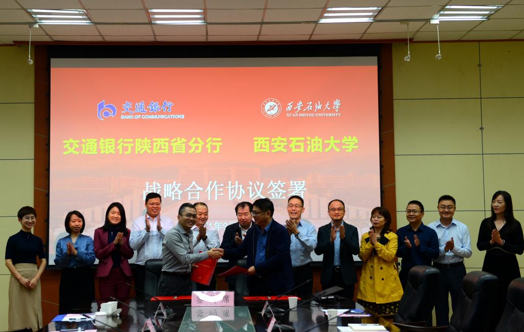 9月30日下午,我校與交通銀行陜西省分行簽署“十四五”期間戰(zhàn)略合作協(xié)議,簽約儀式在我校雁塔校區(qū)第一會議室舉行。交通銀行陜西省分行副行長蔣安祎一行六人,我校校長李天太、總會計師樊曉民出席簽約儀式。簽約儀式由校黨委副書記雷西合主持。