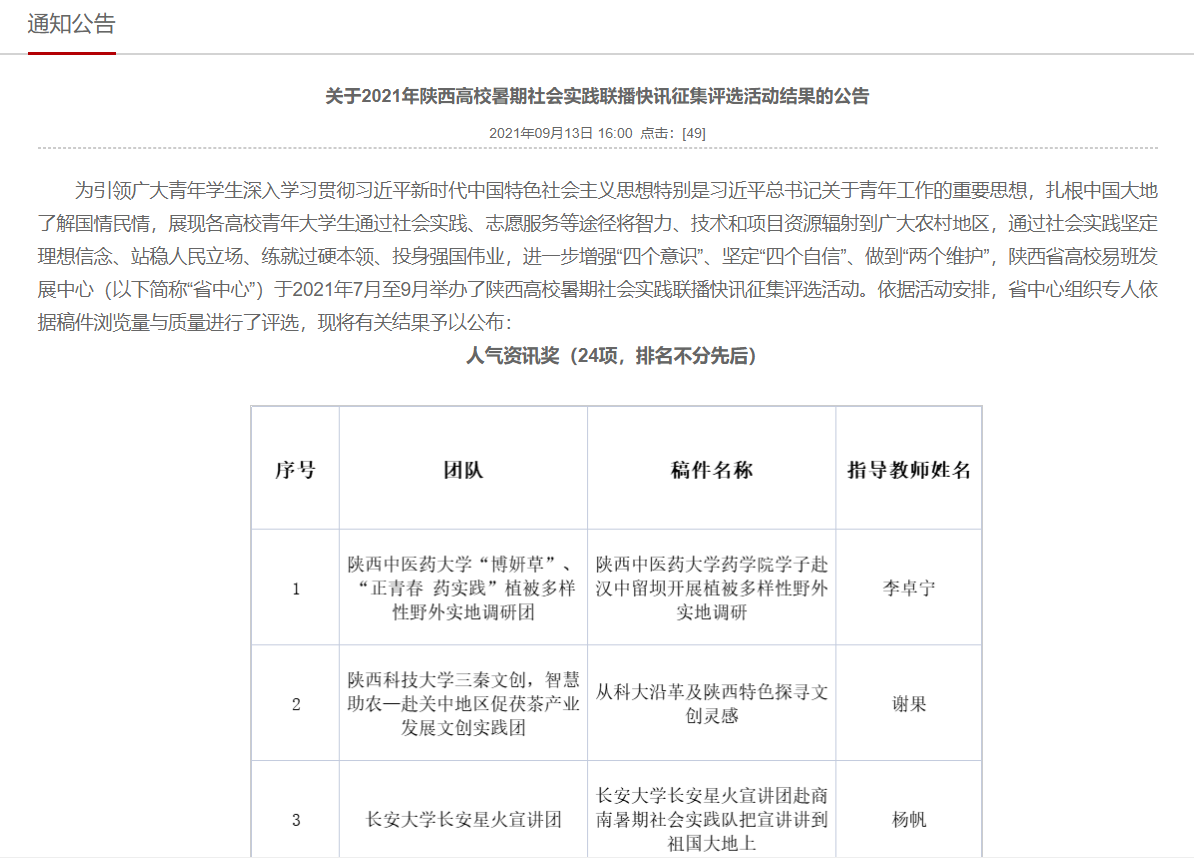 [捷報(bào)快遞]我?!凹t色尋訪”社會(huì)實(shí)踐團(tuán)隊(duì)獲陜西高校網(wǎng)絡(luò)思想政治工作中心表彰