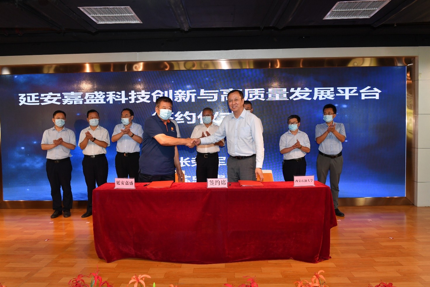 張榮軍副校長代表學(xué)校致辭,他簡要介紹了我校的發(fā)展歷史和科學(xué)研究、人才培養(yǎng)、社會(huì)服務(wù)等基本情況,重點(diǎn)介紹了我校近年在產(chǎn)教融合、校地校企合作、科技成果轉(zhuǎn)化等方面取得的成效。他談到,延安嘉盛公司是陜北地區(qū)最大的石油管材及石油機(jī)械生產(chǎn)的民營企業(yè),創(chuàng)新活力足,發(fā)展?jié)摿Υ螅倚Ec延安嘉盛公司簽訂校企合作協(xié)議并掛牌成立兩個(gè)基地,這是落實(shí)我校與延安市人民政府合作協(xié)議的具體舉措和現(xiàn)實(shí)行動(dòng)。同時(shí),他希望通過此次活動(dòng),雙方進(jìn)一步加強(qiáng)合作,增進(jìn)交流,把雙方合作提升到新的更高層次,共同為公司的持續(xù)發(fā)展、延安高新區(qū)和革命老區(qū)經(jīng)濟(jì)發(fā)展提供技術(shù)和人才支撐。