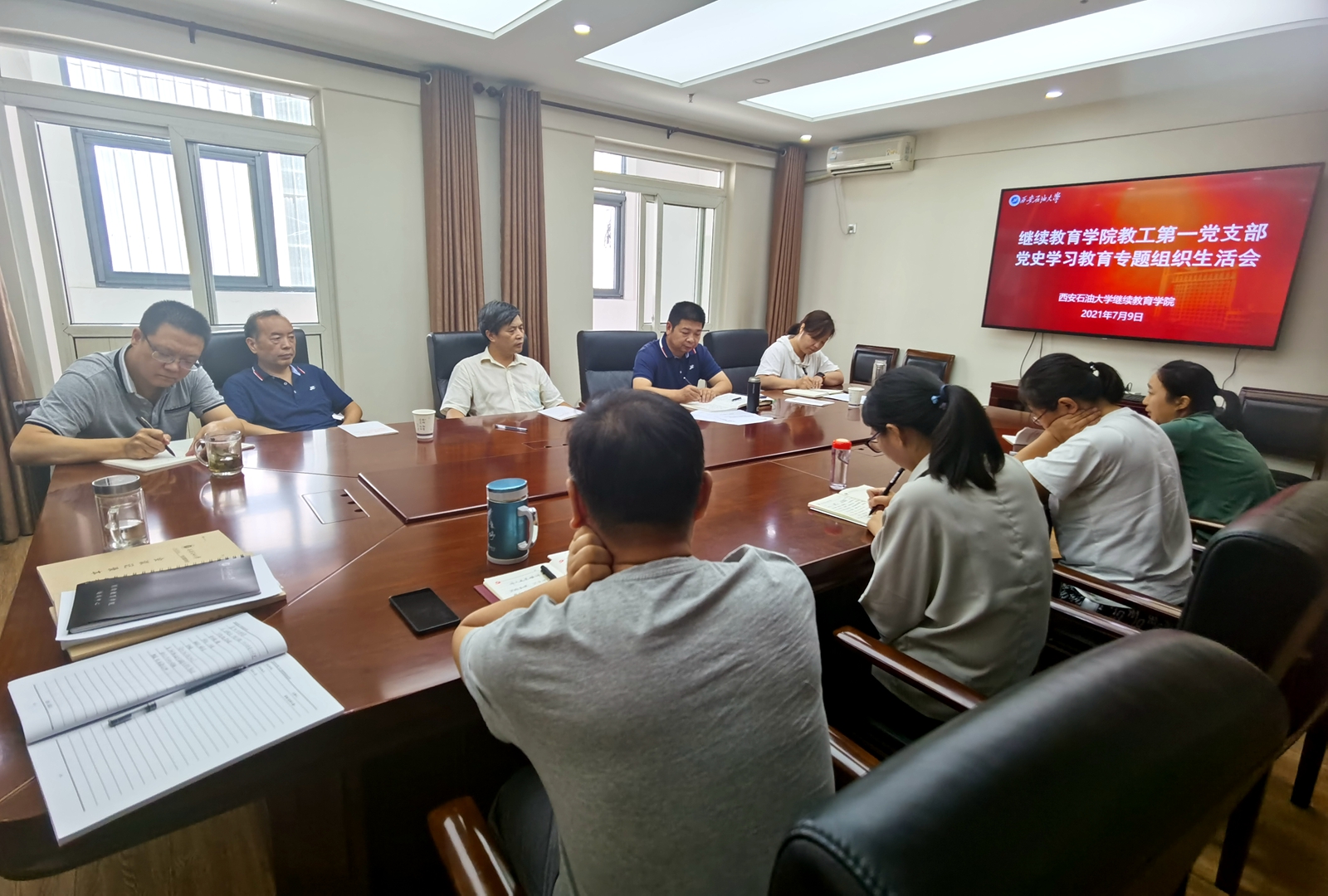 7月9日上午,繼續(xù)教育學(xué)院教工第一、第二黨支部分別召開黨史學(xué)習(xí)教育專題組織生活會(huì)。副校長楊戰(zhàn)社以普通黨員身份參加了教工第一黨支部組織生活會(huì)。學(xué)院領(lǐng)導(dǎo)分別參加所在支部的組織生活會(huì)。