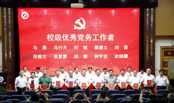 7月6日下午,學(xué)校學(xué)習(xí)貫徹習(xí)近平總書記“七一”重要講話精神暨“兩優(yōu)一先”表彰大會(huì)在雁塔校區(qū)學(xué)術(shù)報(bào)告廳隆重舉行。全體黨員校領(lǐng)導(dǎo)、處科級(jí)黨員領(lǐng)導(dǎo)干部,“光榮在黨50年”老黨員代表,教工黨支部書記、學(xué)生黨支部書記代表,受表彰的先進(jìn)基層黨組織主要負(fù)責(zé)人、優(yōu)秀黨務(wù)工作者、優(yōu)秀黨支部書記、優(yōu)秀教工黨員、優(yōu)秀學(xué)生黨員代表約300余人參加大會(huì)。大會(huì)由校長(zhǎng)、黨委副書記李天太主持。