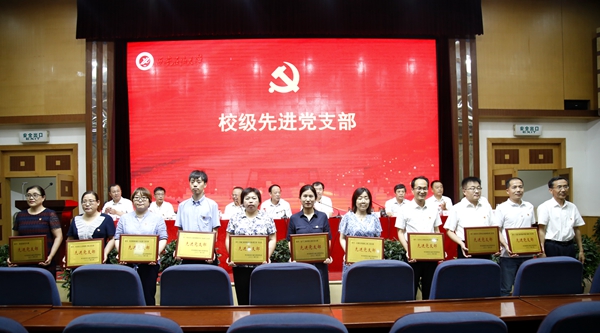學(xué)校黨委獲陜西高校先進(jìn)校級(jí)黨委,地球科學(xué)與工程學(xué)院黨委獲陜西省先進(jìn)基層黨組織,電子工程學(xué)院黨委、化學(xué)化工學(xué)院化學(xué)工程系教工黨支部獲陜西高校先進(jìn)基層黨組織,馬勇、劉科滿、周靜和侯琦等四名同志獲陜西高校優(yōu)秀共產(chǎn)黨員,趙健和種宇宏等二名同志獲陜西高校優(yōu)秀黨務(wù)工作者;石油工程學(xué)院黨委等5個(gè)集體獲校級(jí)先進(jìn)院(系)級(jí)單位黨組織、石油工程學(xué)院油氣藏工程教工黨支部等38個(gè)支部獲校級(jí)先進(jìn)黨支部、馬勇等10名黨務(wù)干部獲校級(jí)優(yōu)秀黨務(wù)工作者、蔡文斌等32名同志獲校級(jí)優(yōu)秀黨支部書記、謝青等306名同志獲校級(jí)優(yōu)秀共產(chǎn)黨員。大會(huì)為到場(chǎng)的12名老黨員頒授“光榮在黨50年”紀(jì)念章、為受到表彰的46個(gè)先進(jìn)集體和個(gè)人代表進(jìn)行頒獎(jiǎng)。地球科學(xué)與工程學(xué)院黨委書記馬行天、黨政辦公室主任趙健、電子工程學(xué)院儀器系黨支部書記劉科滿、化學(xué)化工學(xué)院學(xué)生呂詩怡分別代表受表彰的先進(jìn)集體和優(yōu)秀個(gè)人作了發(fā)言。