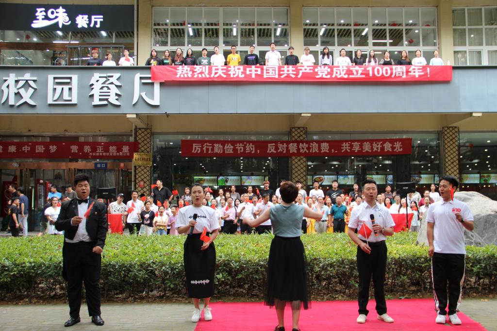 為慶祝中國共產黨成立100周年,響應習近平總書記在黨的十九大報告中提出的新時代堅持文化自信號召,7月1日中午,音樂系組織師生在雁塔校區(qū)學生餐廳舉辦“紅歌快閃”活動,吸引了校園眾多師生觀看,場面熱烈。音樂系已連續(xù)四年組織“紅歌快閃”活動,唱響主旋律,凝聚精氣神,謳歌黨的光輝歷史和豐功偉績,充分展現(xiàn)師生良好的精神風貌。校黨委副書記雷西合,組織部、宣傳部、音樂系、高教研究與評估中心、材料科學與工程學院、馬克思主義學院、經濟管理學院、外國語學院等單位負責人,以及100余名音樂系師生參加了本次“紅歌快閃”活動。本次活動由音樂系黨總支策劃,何云老師排練指導。