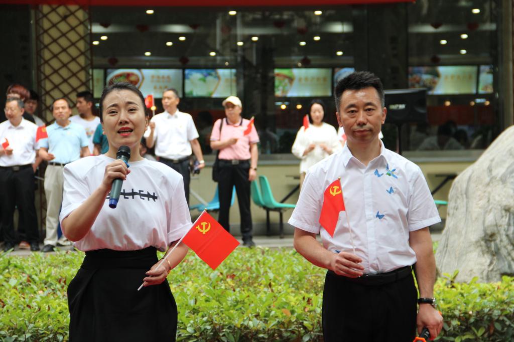 本次“紅歌快閃”活動由2名同學深情演唱《我和我的祖國》開場,2名同學古箏伴奏,4名學生伴舞;聲樂教研室寇利利和霍志銘老師對唱《唱支山歌給黨聽》,頌揚黨的恩情、謳歌黨的偉大;參加活動的師生集體合唱《沒有共產黨就沒有新中國》《歌唱祖國》,合唱由李陽老師指揮、2名幼兒園教師伴舞,鏗鏘有力的歌聲,展現(xiàn)出我校師生“聽黨話、感黨恩、跟黨走”的堅定決心;“紅歌快閃”活動在全體師生深情祝福——偉大的中國共產黨生日快樂,偉大的祖國繁榮昌盛中結束??扉W活動美妙的旋律,悅耳的歌聲在校園唱響,強大的感染力和感召力引領大家自覺地向聲源處靠攏,同學們手持紅色黨旗,動情地隨著音樂合唱,現(xiàn)場洋溢著濃濃的愛黨愛國愛校氛圍。