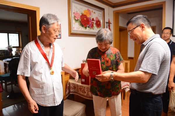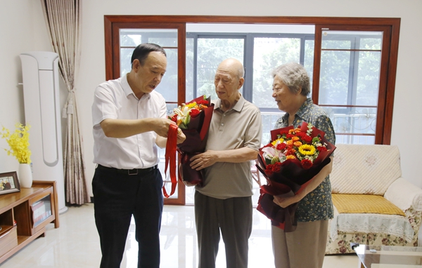 在“慶祝中華人民共和國成立70周年”紀念章獲得者、離休干部薛紀元家中,校黨委書記賽云秀為薛紀元和姚桂榮夫婦佩戴了“光榮在黨50年”紀念章,仔細詢問了他們的身體健康狀況和生活情況。他指出,在建黨100周年之際,黨中央決定頒發(fā)“光榮在黨50年”紀念章,體現(xiàn)了以習近平同志為核心的黨中央對老黨員的政治關(guān)懷,體現(xiàn)了黨和人民對老黨員歷史貢獻的充分肯定,希望他們保持愉悅身心、安享晚年生活,并積極為學校提出寶貴意見建議,助力學校改革發(fā)展。隨后,賽書記慰問了“慶祝中華人民共和國成立70周年”紀念章和“中國人民志愿軍抗美援朝出國作戰(zhàn)70周年”紀念章獲得者董玉田、李秋華夫婦和困難老黨員陳寶江,并為他們佩戴了“光榮在黨50年”紀念章。在陳寶江同志家中,賽書記親切詢問其身體狀況、家庭收入、醫(yī)藥費報銷情況以及生活中存在的困難和問題,叮囑相關(guān)部門要多關(guān)心老黨員的生活,幫助他們解決實際問題。