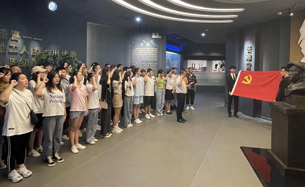 講黨課比賽開始前,學(xué)校組織各院(系)新發(fā)展黨員代表在鐵人王進(jìn)喜紀(jì)念館集中進(jìn)行了入黨宣誓活動(dòng),在黨委組織部常務(wù)副部長種宇宏老師的帶領(lǐng)下,全體新發(fā)展黨員代表面對(duì)黨旗,高舉右手莊嚴(yán)宣誓,表達(dá)了對(duì)黨的鄭重承諾和為黨的事業(yè)奮斗終生的決心。