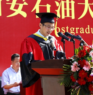研究生導(dǎo)師代表、陜西省青年科技新星、校拔尖人才、化學(xué)化工學(xué)院陳剛教授勉勵研究生保持創(chuàng)新的思維和開放的精神,在今后的工作中從知識學(xué)習(xí)轉(zhuǎn)向問題研究,從學(xué)生氣質(zhì)轉(zhuǎn)向?qū)W者品質(zhì),從理論受教轉(zhuǎn)向?qū)嵺`創(chuàng)新,通過奮斗成就精彩人生。