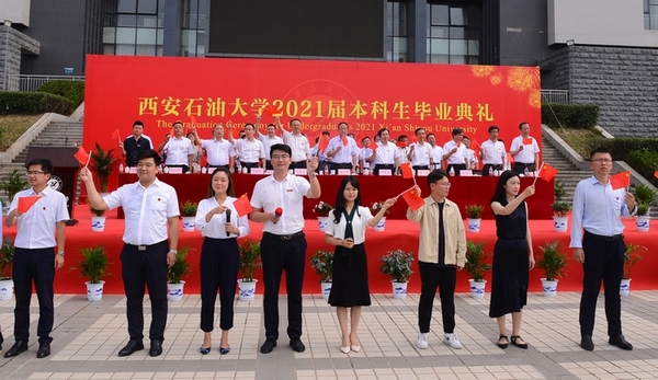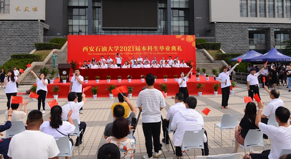 副校長陳軍斌宣讀了《西安石油大學(xué)關(guān)于2021屆本科學(xué)生準(zhǔn)予畢業(yè)、頒發(fā)畢業(yè)證和授予學(xué)士學(xué)位的決定》,副校長楊戰(zhàn)社宣讀了《西安石油大學(xué)關(guān)于表彰2021屆優(yōu)秀畢業(yè)生的決定》,校黨委副書記雷西合宣讀了《西安石油大學(xué)校友總會(huì)關(guān)于聘任2021屆年級(jí)校友理事的決定》。與會(huì)校領(lǐng)導(dǎo)為優(yōu)秀畢業(yè)生代表頒發(fā)了榮譽(yù)證書,為年級(jí)理事代表頒發(fā)了聘任證書和紀(jì)念品,并向畢業(yè)生代表贈(zèng)送了“原油”印章紀(jì)念品。