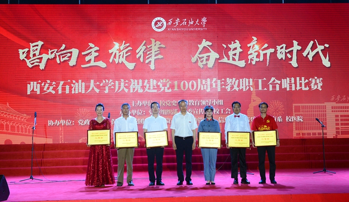 經(jīng)過激烈角逐,最終經(jīng)濟(jì)管理學(xué)院黨委獲得一等獎,電子工程學(xué)院黨委、機(jī)關(guān)黨委第四黨總支、理學(xué)院黨委獲得二等獎,地球科學(xué)與工程學(xué)院黨委、外國語學(xué)院黨委、石油工程學(xué)院黨委、計算機(jī)學(xué)院黨委、體育系黨總支、人文學(xué)院黨委獲得三等獎。還有6支代表隊獲得了優(yōu)秀組織獎。音樂系黨總支獲得了優(yōu)秀表演獎。與會領(lǐng)導(dǎo)為獲獎代表隊頒獎。