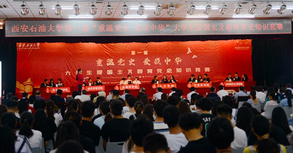 625日晚,由宣傳部、學(xué)生工作部、教務(wù)處、校團(tuán)委主辦,馬克思主義學(xué)院承辦的西安石油大學(xué)第一屆大學(xué)生黨史知識(shí)競(jìng)賽決賽在鄠邑校區(qū)騰輝活動(dòng)中心隆重舉行。校黨政領(lǐng)導(dǎo)賽云秀、李天太、李延平、張木、雷西合、陳軍斌出席。相關(guān)部門負(fù)責(zé)人及學(xué)生代表400余人參加本次活動(dòng)。經(jīng)過前期的初賽,電子工程學(xué)院、經(jīng)濟(jì)管理學(xué)院、外國(guó)語(yǔ)學(xué)院、人文學(xué)院、計(jì)算機(jī)學(xué)院、材料科學(xué)與工程學(xué)院六支代表隊(duì)進(jìn)入決賽。