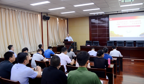 625日下午,張榮軍副校長(zhǎng)在雁塔校區(qū)會(huì)議中心第五會(huì)議室作了題為《學(xué)習(xí)百年黨史 認(rèn)清石油形勢(shì) 啟航“十四五” 奮進(jìn)新征程》的黨史學(xué)習(xí)教育專(zhuān)題輔導(dǎo)報(bào)告。人事處、科技處、國(guó)際交流與合作處、國(guó)際教育學(xué)院、信息中心、電子工程學(xué)院科級(jí)以上干部、教職工黨支部書(shū)記、支部委員及教師代表近100人參加了報(bào)告會(huì)。電子工程學(xué)院黨委書(shū)記何鋮主持報(bào)告會(huì)。