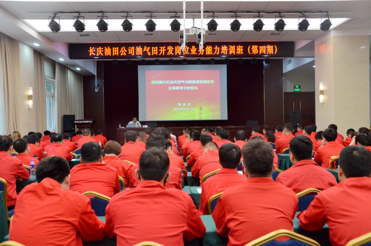 615日上午,校長(zhǎng)李天太教授應(yīng)邀在我校明德校區(qū)為長(zhǎng)慶油田公司2021年油氣田開發(fā)技術(shù)崗位能力培訓(xùn)班全體學(xué)員作了題為《國(guó)際國(guó)內(nèi)石油天然氣與新能源發(fā)展形勢(shì)及莘莘學(xué)子的擔(dān)當(dāng)》的專題報(bào)告,繼續(xù)教育學(xué)院黨總支書記耿嶺主持報(bào)告會(huì)。
