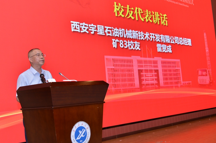 在發(fā)布儀式上,西安宇星石油機械新技術開發(fā)有限公司為學校捐贈了一臺價值200余萬元的SXJ900多用途修井機。校黨委副書記雷西合為石油礦場機械專業(yè)1983級校友、西安宇星石油機械新技術開發(fā)有限公司總經(jīng)理雷寬成頒發(fā)了捐贈證書。雷寬成校友在致辭中回顧了自己的在校學習、工作經(jīng)歷,以及自己從母?!皥F結、勤奮、求是、創(chuàng)新”校風、“好學力行、自強不息”校訓中的受益,衷心感謝母校及各位老師的培養(yǎng),并向廣大在校師生表達了期望與祝福。