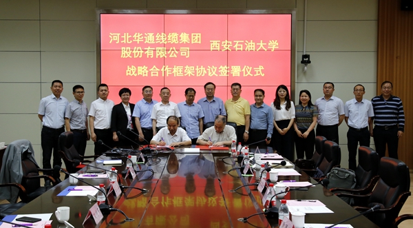 陳軍斌副校長與張文勇董事長分別代表西安石油大學和河北華通線纜集團股份有限公司簽署了校企戰(zhàn)略合作框架協(xié)議。協(xié)議中約定雙方今后將在科研合作與技術交流、人才培養(yǎng)等幾個方面開展全面合作。