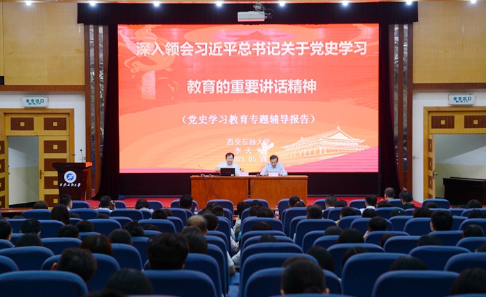 514日下午,校長(zhǎng)、黨委副書(shū)記李天太在雁塔校區(qū)學(xué)術(shù)報(bào)告廳作了題為《深入領(lǐng)會(huì)習(xí)近平總書(shū)記關(guān)于黨史學(xué)習(xí)教育的重要講話精神》及《國(guó)際國(guó)內(nèi)石油天然氣與新能源發(fā)展形勢(shì)及莘莘學(xué)子的擔(dān)當(dāng)使命》的黨史學(xué)習(xí)教育專(zhuān)題輔導(dǎo)報(bào)告。學(xué)生工作部、研究生工作部、團(tuán)委全體人員,全體輔導(dǎo)員,雁塔校區(qū)研究生黨員代表、本科生代表等共300余人聆聽(tīng)了報(bào)告。張木副書(shū)記主持報(bào)告會(huì)。