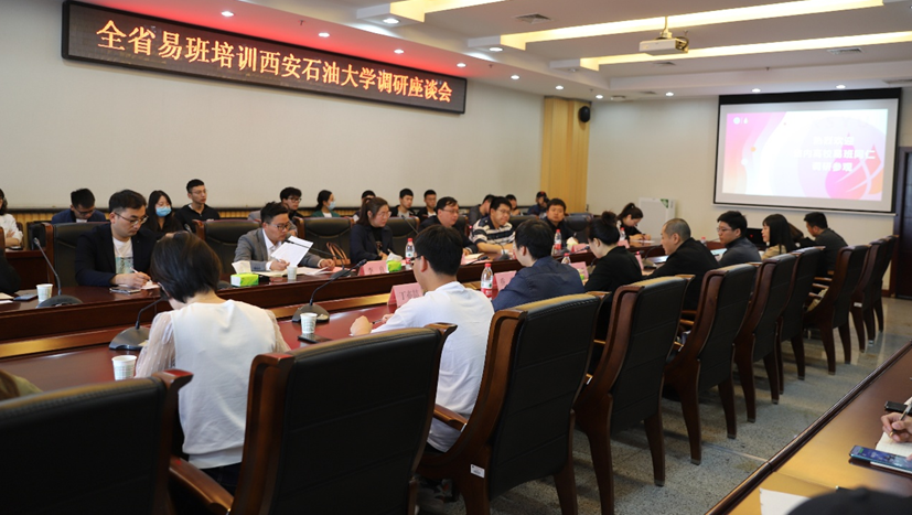430日,教育部易班發(fā)展中心、陜西高校網(wǎng)絡(luò)思想政治工作中心工作人員及全省易班培訓(xùn)會(huì)參會(huì)師生一行60余人來(lái)我校實(shí)地參觀調(diào)研易班發(fā)展中心并舉行座談會(huì)。座談會(huì)上,學(xué)生工作部(處)部(處)長(zhǎng)高健磊致歡迎詞,他首先感謝上級(jí)各部門對(duì)學(xué)校易班專項(xiàng)工作的大力支持,并簡(jiǎn)要介紹了學(xué)校網(wǎng)絡(luò)思政及易班建設(shè)概況。陜西科技大學(xué)網(wǎng)絡(luò)思政中心主任李萌對(duì)我校熱情接待表示感謝,并介紹了舉辦本次培訓(xùn)會(huì)的背景和來(lái)我校實(shí)地調(diào)研參觀的目的。雙方表示今后要進(jìn)一步加強(qiáng)交流合作,以建黨100周年為契機(jī),持續(xù)提升大學(xué)生思想政治教育水平。座談會(huì)上,長(zhǎng)安大學(xué)、西安理工大學(xué)和我校易班工作負(fù)責(zé)人介紹了各自高校易班建設(shè)的特色做法和在新形勢(shì)下開展網(wǎng)絡(luò)思政教育的積極探索。