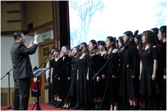 本次教學展示活動遵循總書記在文藝座談會上提出的“文藝發(fā)展的使命和作用”的精神,踐行文化自覺和使命擔當,推動音樂系文藝繁榮發(fā)展,為校園文化建設(shè)提供強大精神文化力量。音樂系教師堅持知識傳授與價值引領(lǐng)相結(jié)合,運用培養(yǎng)大學生理想信念、價值取向、政治信仰、社會責任的題材與內(nèi)容,以“黨在我心中”系列主題藝術(shù)實踐活動為平臺,以藝術(shù)實踐為手段,弘揚愛國、愛黨精神,宣傳先進文化思想,激勵教師與學生向高標準看齊,不斷提高我系的專業(yè)理論水平、鍛煉學生舞臺表演技能。通過課程教學展示,以更靈活、更豐富多彩的形式,多維度、深層次的將“課堂思政”滲透與延伸到以藝術(shù)實踐為主的第二課堂中。本次教學展示活動共演出12個節(jié)目,其中器樂合奏《我的祖國》、琵琶重奏《琵琶語》、合唱《黑貓警長》、童聲小合唱《中國船》(王欣怡同學原創(chuàng)、駱珞老師作曲),以及為歌頌抗疫醫(yī)務工作者的原創(chuàng)歌曲《別父母書》(抗疫醫(yī)生趙春光作詞、駱珞老師作曲)等節(jié)目給觀眾留下了深刻印象。教學展示活動在雄壯的《輝煌明天》校歌中圓滿結(jié)束。