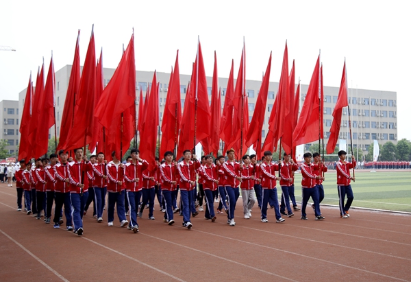 副校長(zhǎng)、校體育運(yùn)動(dòng)委員會(huì)主任陳軍斌致開幕辭。他首先代表學(xué)校向運(yùn)動(dòng)會(huì)的開幕致以熱烈祝賀,向?yàn)楸敬芜\(yùn)動(dòng)會(huì)付出辛勤勞動(dòng)的教職員工和同學(xué)們表示衷心的感謝。他談到,長(zhǎng)期以來,我校高度重視體育工作,始終堅(jiān)持“以人為本,健康第一”的體育教育思想,全面落實(shí)“健康教育、終身體育”的體育教學(xué)理念,充分發(fā)揮體育在學(xué)生成長(zhǎng)成才和全面發(fā)展中的重要作用,營(yíng)造了良好的校園體育活動(dòng)氛圍。在過去的兩年里,學(xué)校各項(xiàng)體育競(jìng)賽活動(dòng)蓬勃開展,我校學(xué)子在眾多體育賽事中取得了優(yōu)異成績(jī),為學(xué)校贏得了榮譽(yù)。他希望望全體運(yùn)動(dòng)員遵守比賽規(guī)則,服從裁判,奮力拼搏,賽出水平,賽出風(fēng)格,盡情體驗(yàn)“更快、更高、更強(qiáng)”的奧運(yùn)精神;全體裁判員在賽場(chǎng)上客觀公正,嚴(yán)格執(zhí)法;希望全體工作人員積極工作,熱情服務(wù),保證運(yùn)動(dòng)會(huì)順利舉行。